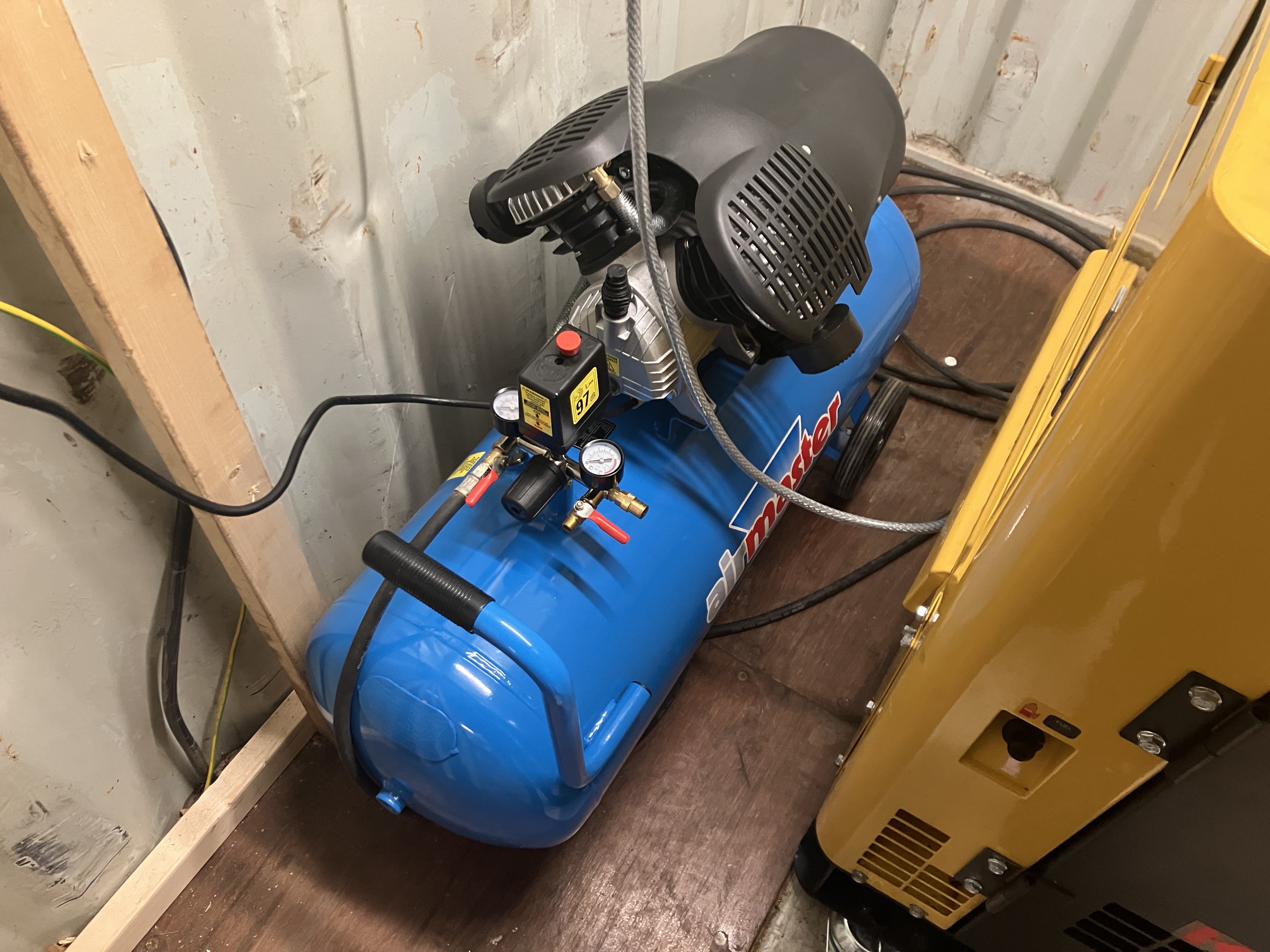Above: The 100l Air compressor for blowing off the cars after a race.