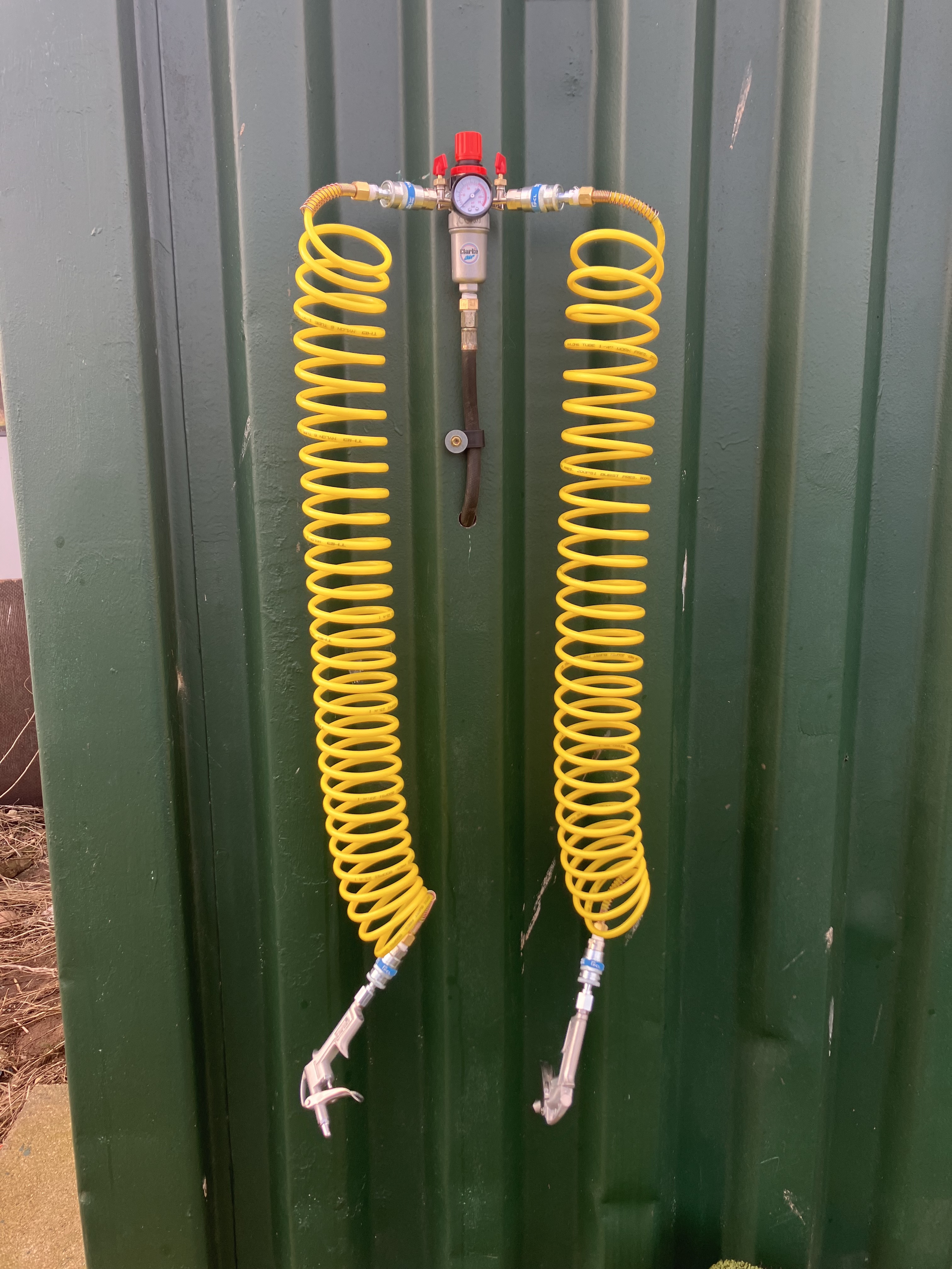 Above: Back of the container closed to the car park/field. Airline regulator and attachments ready for the air blowers to be attached during a race meeting. (Now been moved to the side of the container)