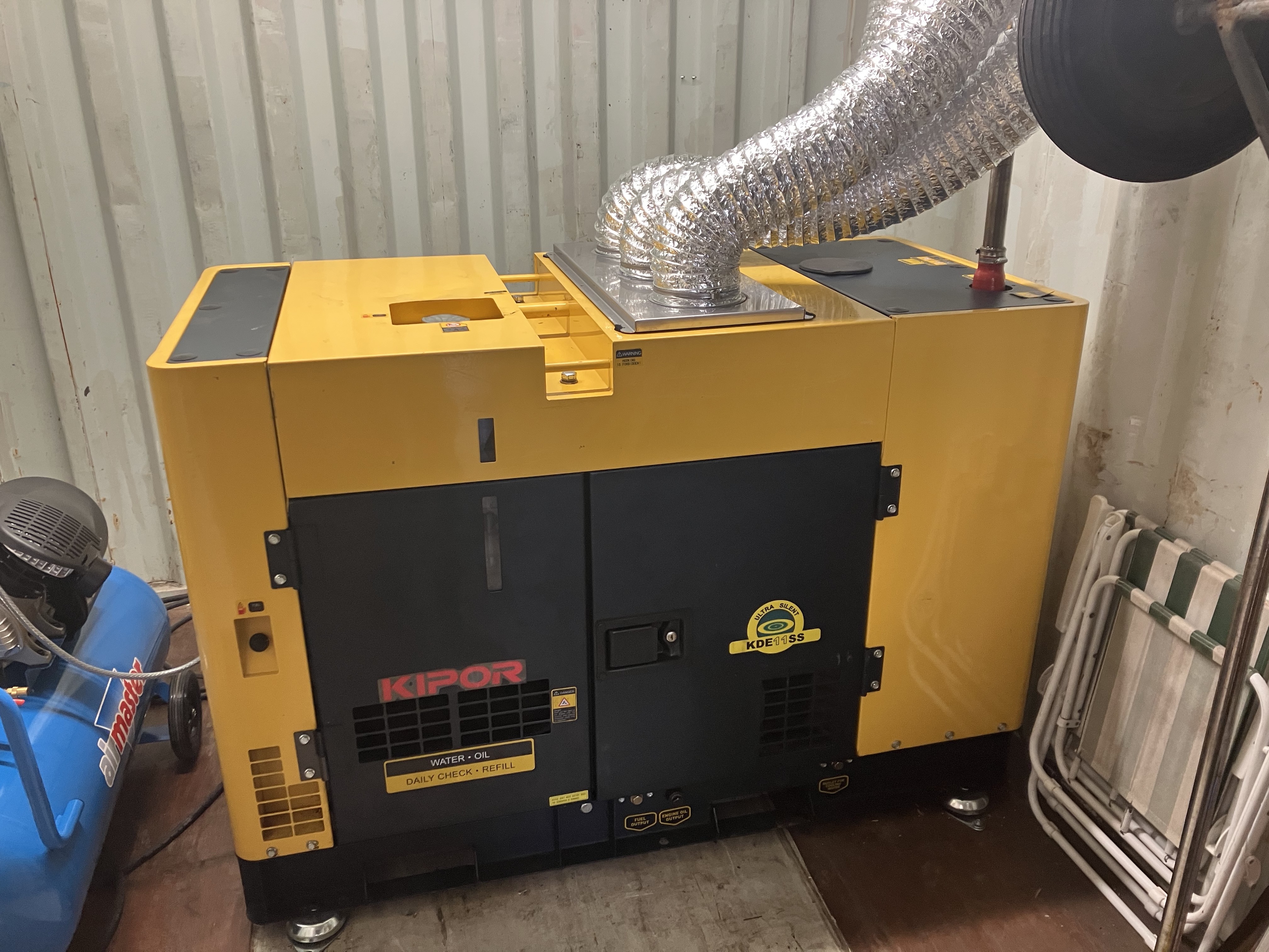 - Delivery of a new 11kva generator. Installed with exhaust through the roof!